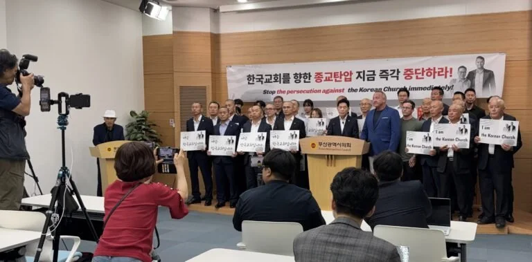 Pastors and elders in Busan ask for the release of Pastor Son, supported by Rob McCoy, longtime pastor of Godspeak Calvary Chapel in California.